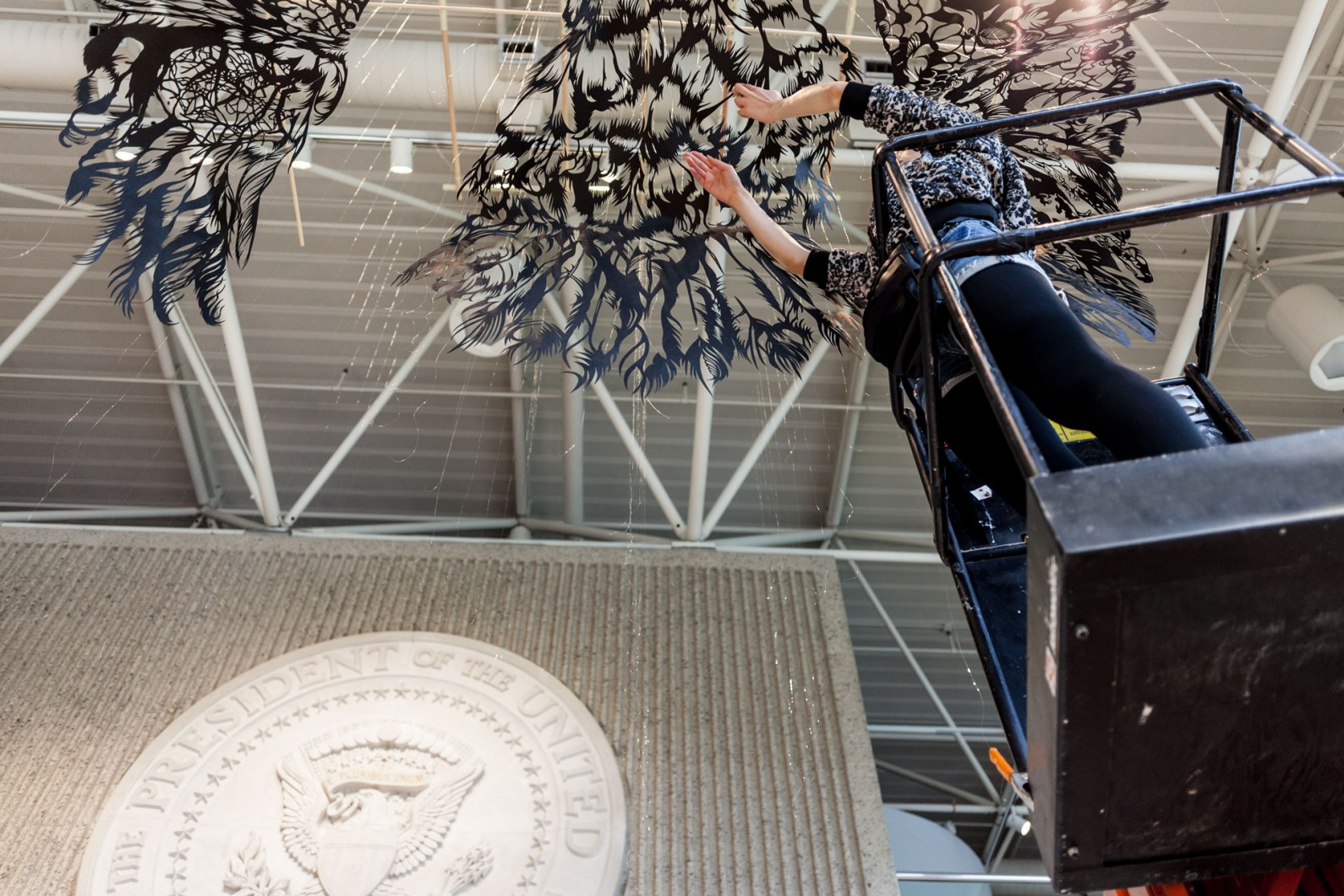ArtPrize 2014: Nahoko Kojima astounds US crowd with the heavenly, Washi (2014) Bald Eagle. The word literally translates from Japanese as Eagle, but also means the type of paper that was used to cut the piece. A narrative runs through the piece as is customary for Nahoko’s style but the form cut by hand from only one 10ft square sheet of paper is a truly masterful feat.
